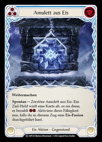 Go againInstant - Destroy Amulet of Ice: Target hero discards a card unless they pay . Activate this ability only if you have Ice fused this turn.