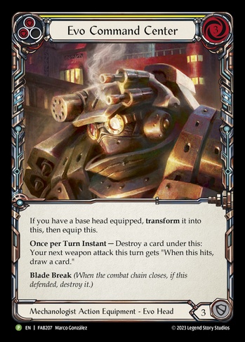 Once per Turn Instant -- Destroy a card under this: Your next weapon attack this turn gets "When this hits, draw a card."