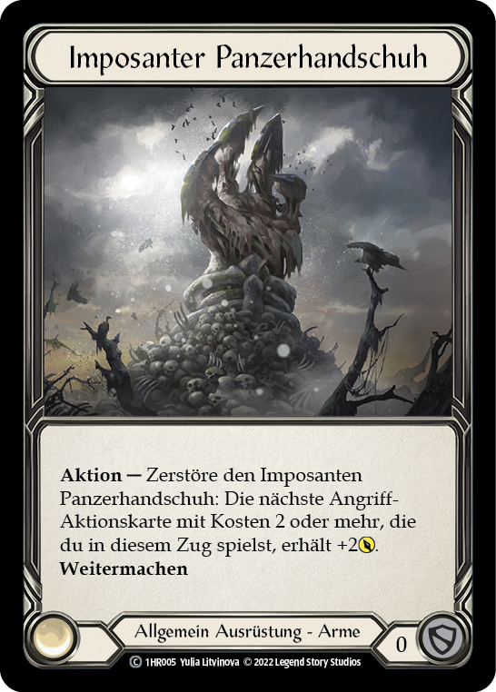 Action - Destroy Goliath Gauntlet: The next attack action card with cost [2 resource] or greater you play this turn gains +2 . Go again