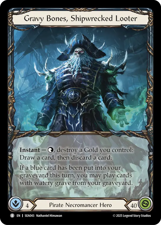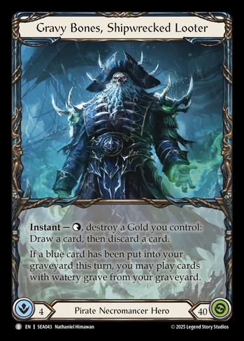 Instant - , destroy a Gold you control: Draw a card, then discard a card.If a blue card has been put into your graveyard this turn, you may play cards with watery grave from your graveyard.