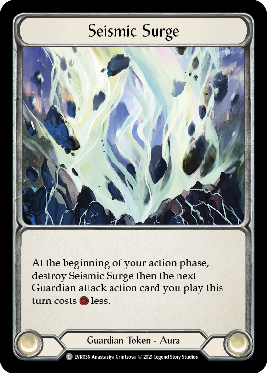 At the beginning of your action phase, destroy Seismic Surge then the next Guardian attack action card you play this turn costs less to play.