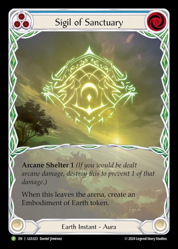 Arcane Shelter 1 (If you would be dealt arcane damage, destroy this to prevent 1 of that damage.)When this leaves the arena, create an Embodiment of Earth token.