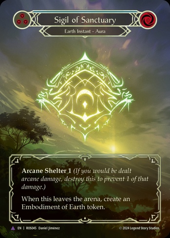 Arcane Shelter 1 (If you would be dealt arcane damage, destroy this to prevent 1 of that damage.)When this leaves the arena, create an Embodiment of Earth token.