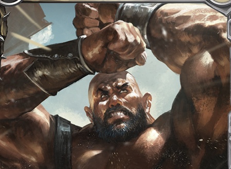When this defends, clash with the attacking hero. The winner creates a Might token. (Clashing heroes reveal the top card of their deck. The hero that reveals the card with greatest wins.)